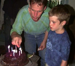 Here's a picture of me (Jerome Howard Bicknell) and Halley (James Halley Bicknell) on the occasion of his seventh birthday (3 July 1997)